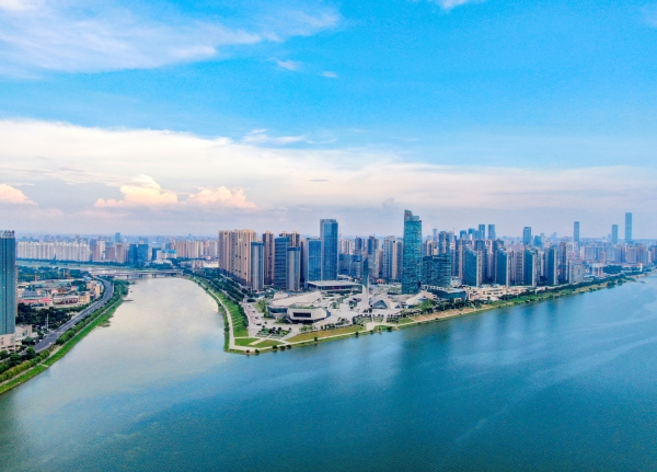 从高空俯瞰开福区,江河汇合,高楼林立,勾勒出长沙最具现代感的城市封面,尽显城市磅礴气势。(资料图)