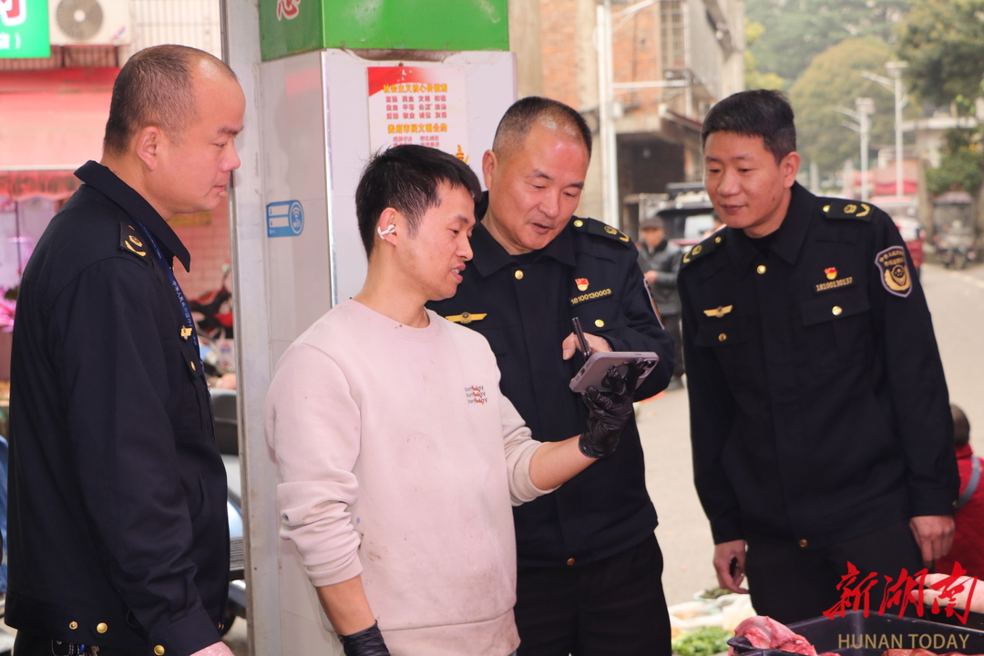 在仙人阁农贸市场,检查也在同步进行。水产、活禽、卤菜摊前,执法人员用标准砝码核验电子秤,显示屏数字准确无误;肉铺旁,另一组执法人员正检查进货凭证,摊主熟练调出手机里的电子检疫票据。“查得好!你们要经常查、天天查,我们买菜才更放心!”一位老人说。