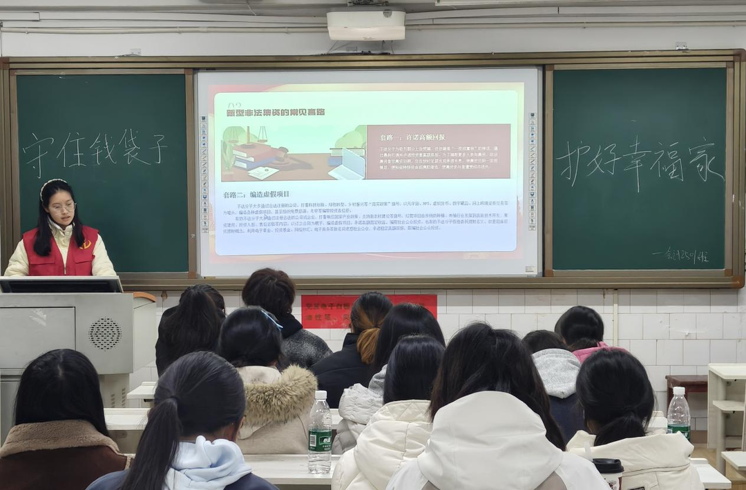 新湖南客户端讯(通讯员 廖帅 刘广武)三月春风暖,雷锋精神传。近日,湖南信息职业技术学院经济管理学院“青春防非志愿团”以雷锋月为契机,将防范非法金融活动宣传阵地聚焦校园课堂,在各班级开展“守住钱袋子 护好幸福家”主题班会活动,通过发放宣传册、有奖问答等互动形式,为在校学生送上了一堂生动的金融安全课。