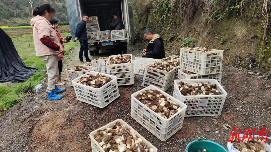 走进棚内,一股湿润的泥土气息扑面而来。一朵朵褐色的羊肚菌从垄上探出头来,挨挨挤挤,长势喜人。村民们弯腰在菌垄间穿行,手里的剪刀“咔嚓咔嚓”地响着,一筐筐菌菇被装满。