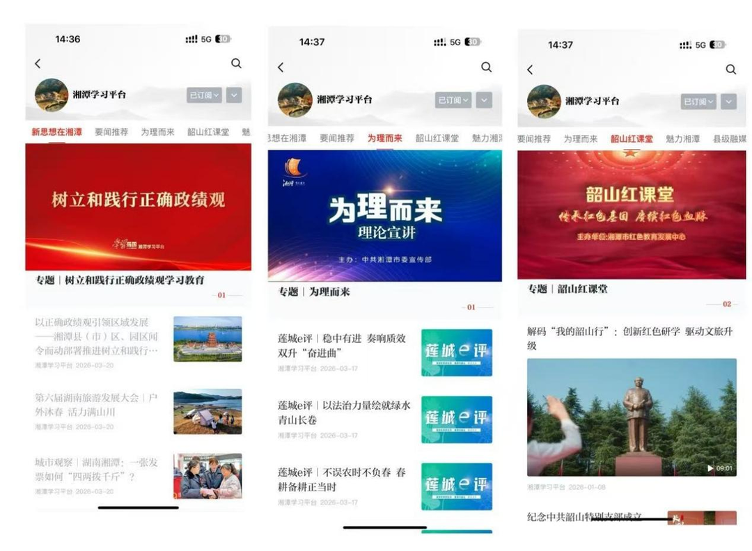 2025年,“学习强国”湘潭学习平台精心整合市、县两级媒体资源,立足地方特色、统筹各类资源、做优内容供给、创新表达形式,全方位、立体化、多视角展示湘潭经济社会高质量发展成就。湘潭学习平台已然成为湘潭市理论武装主阵地、宣传湘潭形象主窗口,学习之风劲吹莲城大地。
