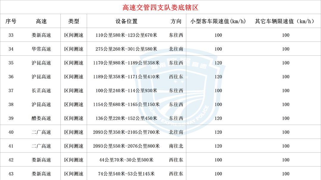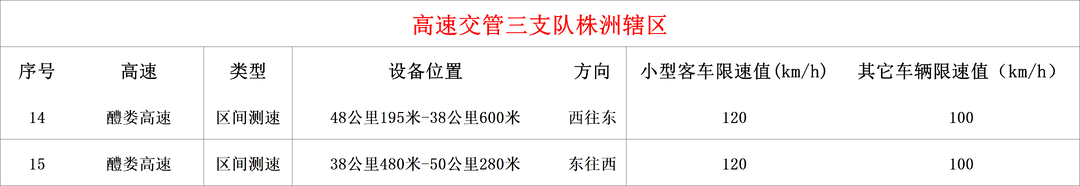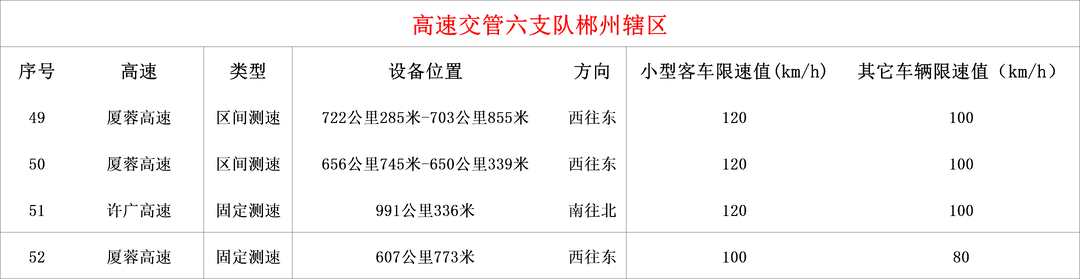 新增测速点及限速标准