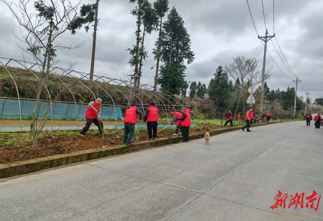 3月25日,湘西土家族苗族自治州凤凰县腊尔山镇夯卡村的通村公路旁,50余名党员干部与志愿者手持铁锹形成“播种长龙”,将县林业局调配的硫华菊、百日草、黄心菊等5个品种花种播撒在裸露路基边坡。