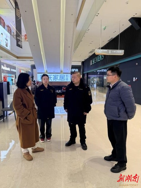 长沙市雨花区市场监督局洞井分所负责人与居然之家商场负责人交流运营情况。