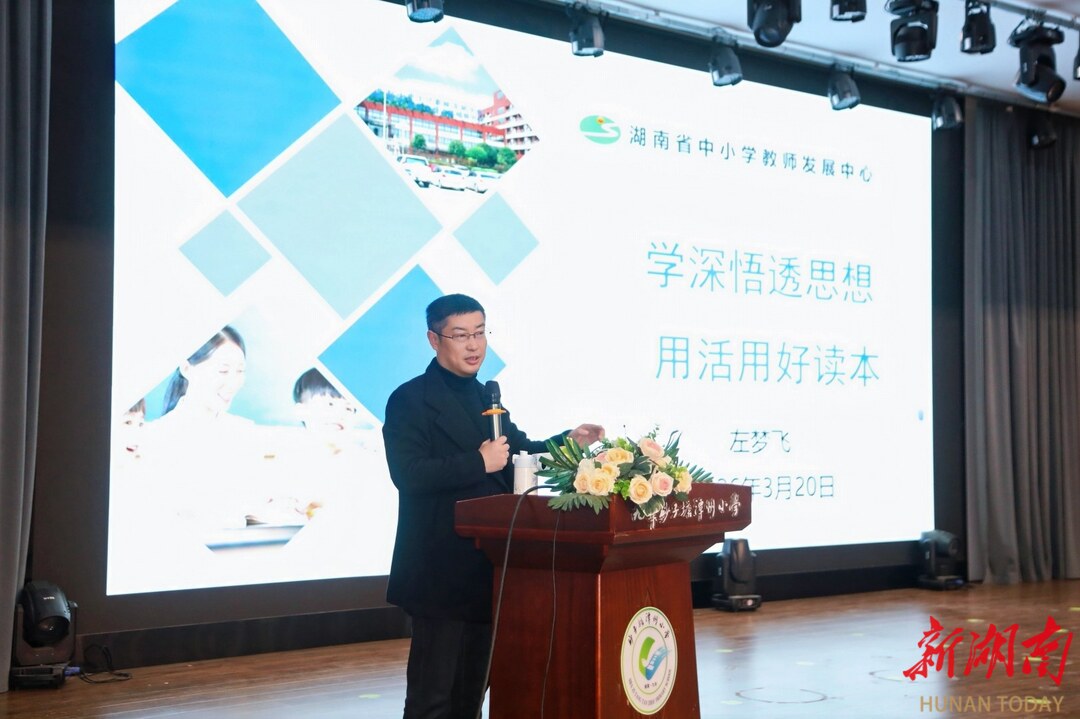 湖南省中小学教师发展中心副主任、湖南省特级教师左梦飞以《学深悟透思想 用好用活读本》为题开展专题讲座,他结合课例,就《读本》教材把握与教学实践开展深入指导,帮助教师们破解教学难点、优化课堂设计。