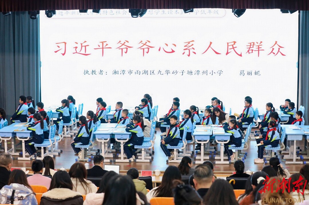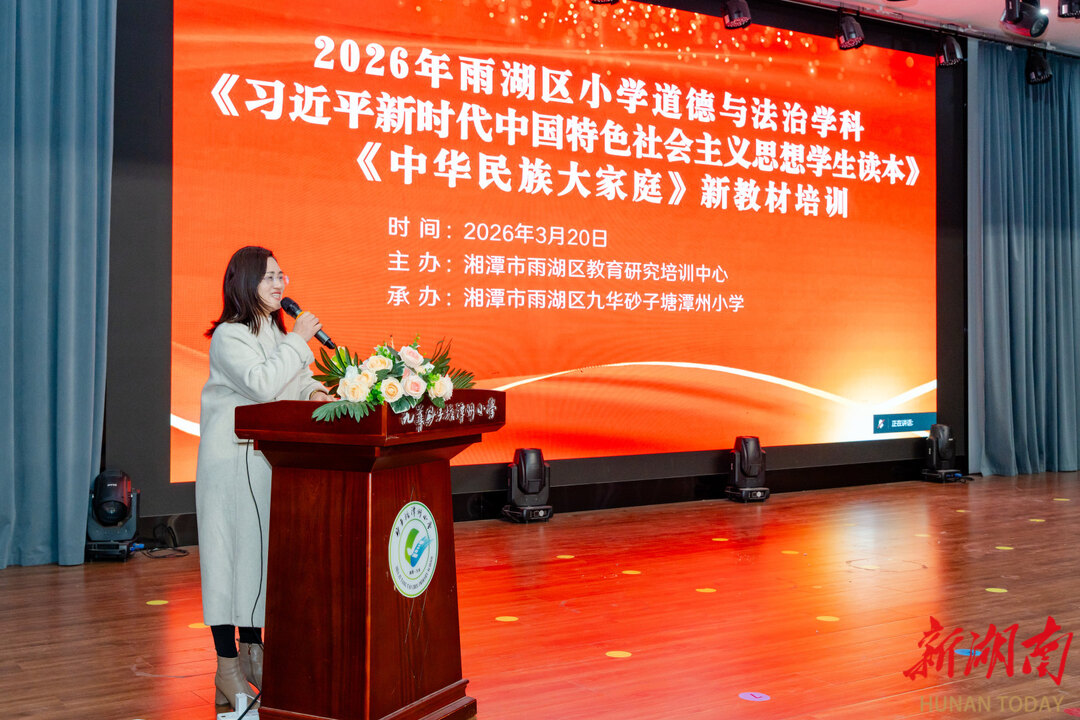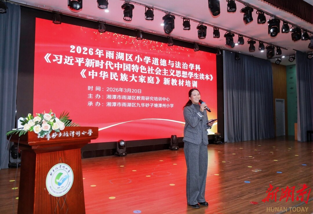 湖南日报·新湖南客户端3月26日讯(通讯员 张勇)为牢牢把握立德树人根本任务,持续深化铸牢中华民族共同体意识教育,全面提升小学思政教师教材研读与课堂教学能力,3月20日,湘潭市雨湖区小学道德与法治学科新教材专题培训活动在九华砂子塘潭州小学举办。湖南省思政名师工作室联盟“彭育红名师工作坊”全体成员、湘潭市小学思政名师工作室成员、雨湖区中小学思政名师工作室成员、响水乡中心校教研共同体及区思政学科带头人、骨干教师、思政教师等约150人齐聚一堂,共研思政课堂新方向。