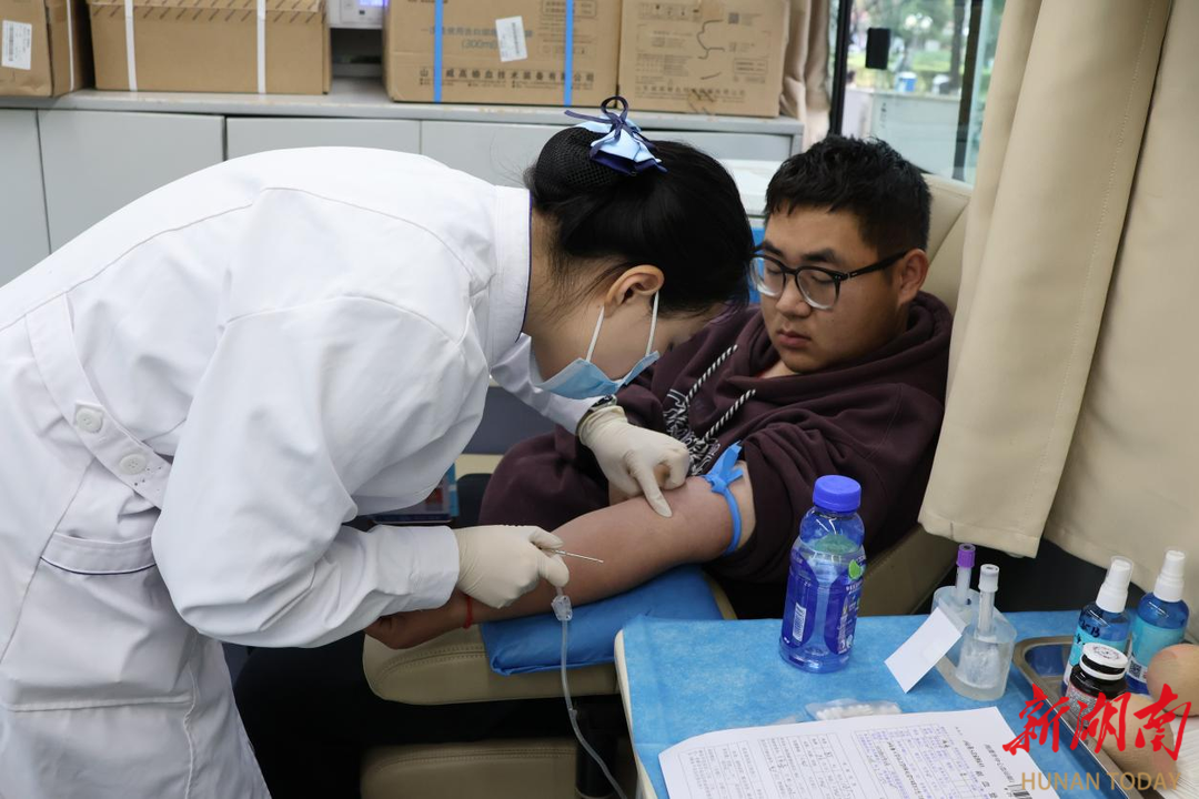 湖南日报·新湖南客户端3月26日讯(通讯员 包淑晨 杨祺 丁琪)近日,由湘潭市中心血站与湘潭大学文学与新闻学院主办的“三月承锋志,热血赴春行”无偿献血活动,在金瀚林学生公寓前坪、大礼堂前坪、西湖公寓前坪开展。