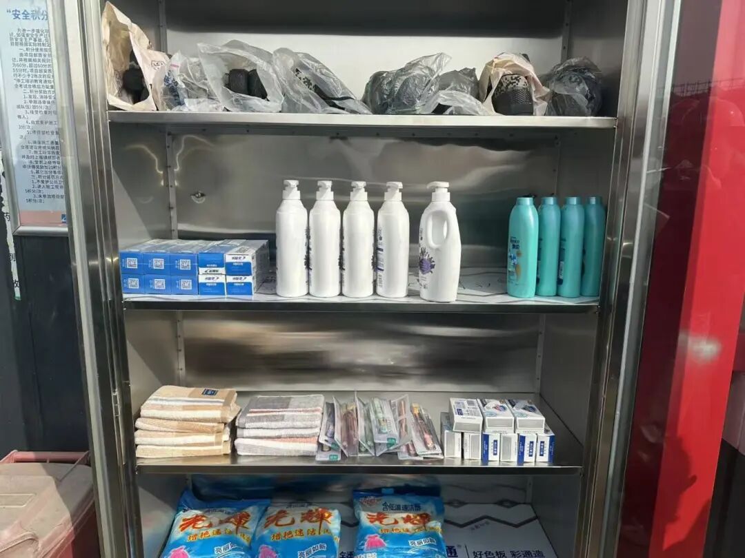 走进项目部,显眼处摆着一个小货架:毛巾3分、洗发水8分、解放鞋15分。每位工人初始60分,月末根据安全行为、隐患上报、文明施工等情况加减分。班组长肖子其指着货架:“上个月我换了鞋,这个月攒分想换个好点的洗发水。”