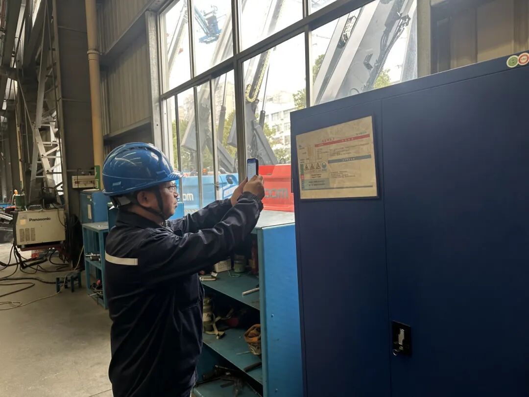 在星邦智能的生产车间,45岁的班组长周再良正举着手机,对着设备平台扫码。屏幕上弹出该风险点的检查清单:安全锁、气管、气压表……他一项项核对,忽然,焊丝机上的一个插销引起他的注意:“这个安全锁松了,万一掉下来,下面就是操作位。”