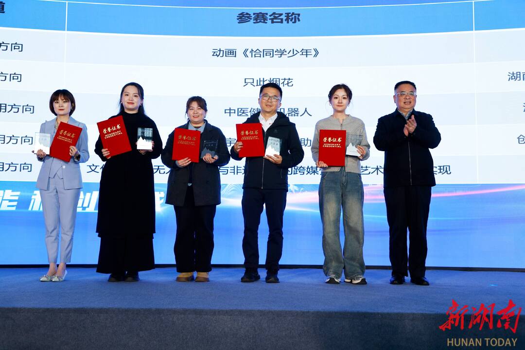 路演现场亮点纷呈,参赛项目涵盖“数字文化创意”“文化科技跨界应用”两大赛道,涉及数字文创、智慧文旅、非遗传承等多个前沿领域,文化与科技碰撞出别样火花。“湘当有味—‘辣啾啾’和她的朋友们”项目,以湖湘饮食文化为核心,通过数字动漫与IP化运营,推动湘味文化广泛传播;“基于行业大模型的智慧医疗解决方案”,依托数字技术为医疗服务注入数智新动能;“文化天幕-无人机集群与非遗烟花的跨媒介动态艺术设计与实现”,用科技赋能非遗,打造城市文旅新名片。