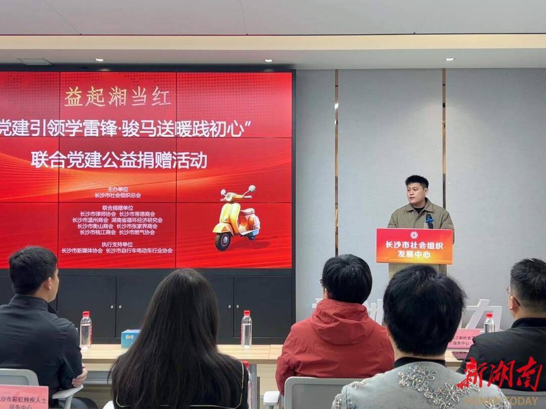 湖南日报·新湖南客户端3月26日讯(通讯员 张防城 余维)在“学雷锋纪念日”与“国际社工日”交汇之际,一场别开生面的“跨界赋能”行动在长沙激荡回响。3月26日,由长沙市社会组织总会(以下简称“总会”)牵头,联合长沙市律师协会等11家商协会社会组织,共同启动“益起湘当红”党建品牌系列活动之“党建引领学雷锋·骏马送暖践初心”联合党建公益捐赠活动。