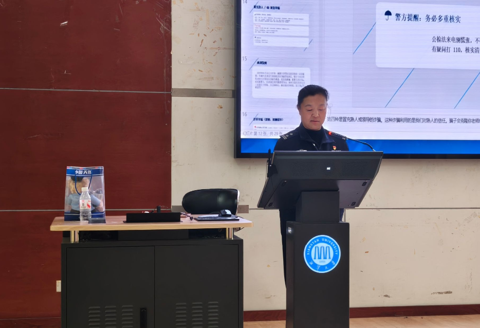 为切实提升学生防范非法金融和防范电信网络诈骗的意识和能力,3月17日,湘潭大学哲学与历史文化学院(碧泉书院)在逸夫楼第二报告厅举行班团骨干防非反诈宣传会。本次会议邀请到湘潭市公安局雨湖分局长城派出所赵颖警官、陈新林警官,雨湖公安分局侦查反诈中心彭标警官,湘潭大学保卫部治安科林长富科长、邹文卓老师。会议由学院党委书记资义平主持,赵颖警官主讲,学院全体辅导员、班主任共同参与。