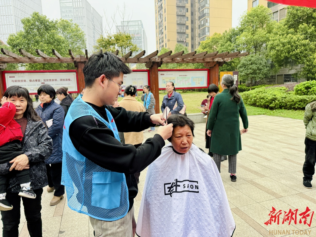 在便民服务区域,“专业”与“志愿”的融合效应更加凸显。义诊台前,专业医护人员在社工的引导下,给老人们量血压、测血糖,还耐心解答“降压药怎么吃”“血糖高咋调理”这些日常问题;爱心义剪摊位,理发师志愿者在社工的协调下,有序为老人和儿童提供服务。特别是在金融防诈骗宣传区,社工们联合长沙银行科创支行的工作人员将专业的防诈知识转化为通俗易懂的案例,志愿者们则通过发放宣传单、现场答疑等方式,将知识传递给每一位居民。“以前觉得社工离我们很远,今天才发现,他们把专业的服务都融在了这些小事里。”居民吕大妈在听完宣传后感慨道。