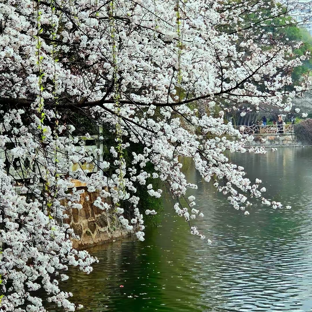 我所住小区旁的长沙望月公园,铜盆湖畔就有成片的樱花树,300株早樱沿湖绽放,搭配西汉长沙王吴著墓遗址,别有一种文化韵味,湘江新区多年在此举办“早樱心语·湘江有礼”文旅消费季活动,我曾不止一次与爱人在樱花满树时节踟蹰在铜盆湖畔。