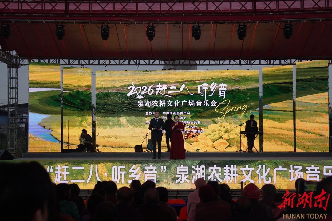 农耕文化广场上,“赶二八·听乡音”音乐融合演出火热上演,民歌、戏曲、小品等节目轮番登场,在人群中掀起阵阵声浪。广场另一侧,医疗义诊、政策宣讲、农技大讲堂等活动同步开展,工作人员耐心解答,把惠民服务送到群众身边。现场还开设“清泉农夫”助农直播间,本地网红与驻村书记联手推介衡南特色农产品,为乡村产业发展聚人气、拓销路。