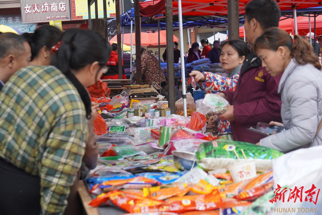 泉湖镇二八市场人流如织。