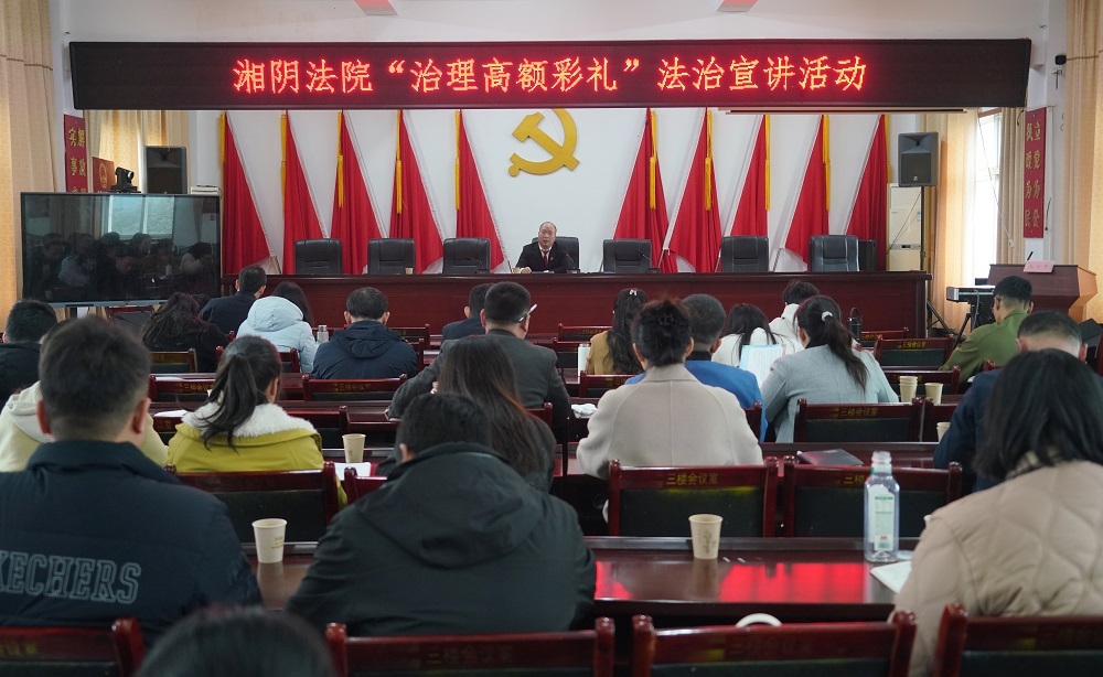 3月25日,湘阴县人民法院走进石塘镇,为辖区镇村两级干部及群众开展一场以“治理高额彩礼”为主题的法治宣讲活动。