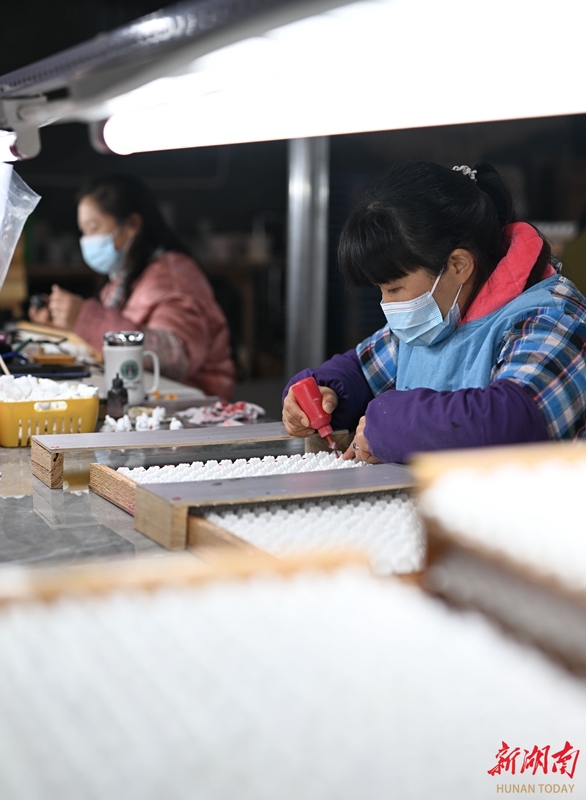 3月26日,城步苗族自治县茅坪镇嘉俊工业品加工厂,宝妈正忙着赶制订单产品。这家2025年被当地就业部门纳入重点扶持的“乡村车间”,吸纳了28名来自附近易地扶贫安置点的宝妈就业,人均月收入超3000元。严钦龙 颜强 摄影报道(湖南图片库)