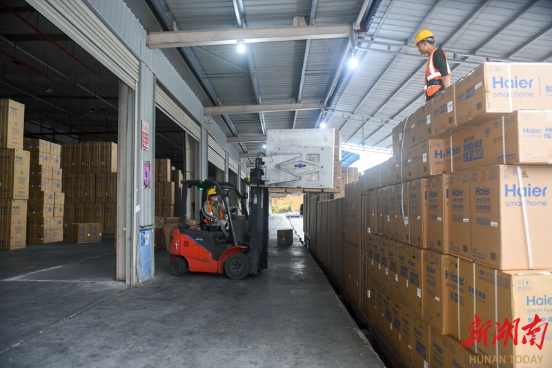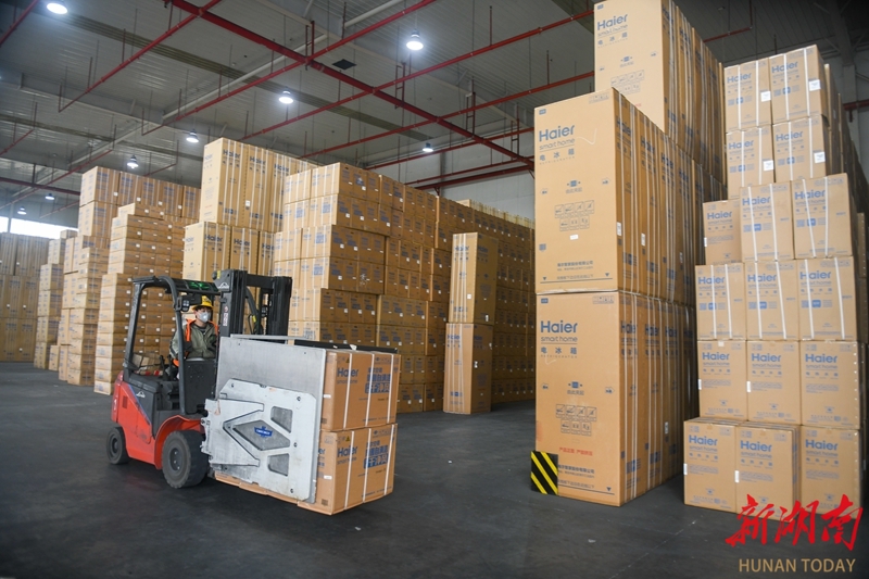 3月26日,娄底诚通物流园海尔日日顺仓库,工人正加紧装运电器。近年来,娄底市加快构建“通道+枢纽+网络”现代物流体系,持续提升大宗运输、冷链及跨境电商等服务能力,已形成冷链物流、仓储加工、金融监管、电商中心库、区域分拨、城市配载等多元功能,为稳定产业链供应链、推动经济高质量发展提供有力支撑。吴永华 摄(湖南图片库)