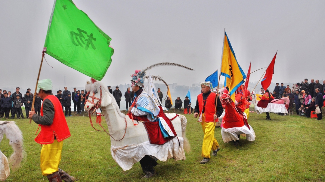 石羊村的廉韵还藏在省级非遗项目石羊走马灯的光影里,它不只是热闹的年俗表演,更是刻在武冈人骨子里的忠义精神与家国情怀。赧水河畔与油菜花海之间的空地上,石羊走马灯节目表演引起游客们驻足围观,扮演穆桂英、杨宗保等角色的村民,身着古装,腰系竹马,手持兵器,在锣鼓唢呐声中,变幻长蛇阵、梅花阵等经典战阵,生动还原杨家将大破天门阵的壮阔场景。
