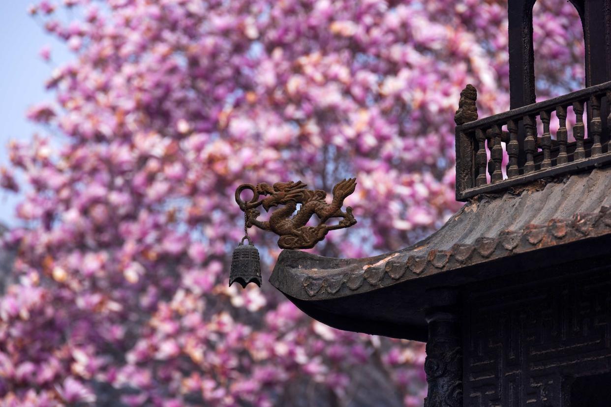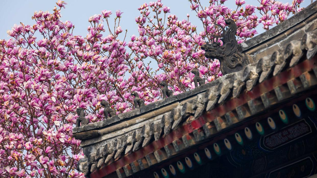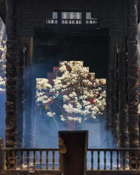 北京白云观内青烟袅袅,白玉兰与紫玉兰迎来最佳观赏期,春日盛景如约而至。