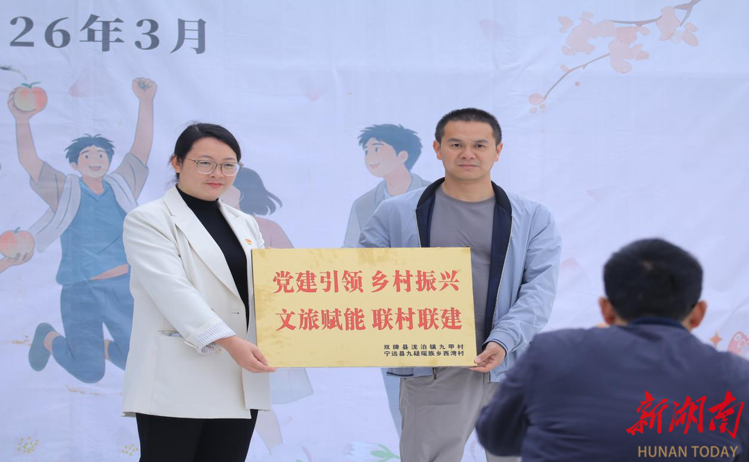活动中,宁远县九疑瑶族乡西湾村村支书将“党建引领 乡村振兴 文旅赋能 联村联建”牌匾移交九甲村,两村以党建为引领,结下联村联建的深厚情谊,实现资源共享、优势互补,为乡村振兴注入了跨区域协作的新动能。