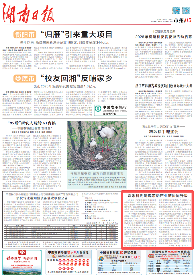 “有了政策支持和资金扶持,我们和中南大学共建研发中心,专利数量不断增加,产品附加值也提升40%。”飞恒合金公司负责人说,产品已远销多个地区,深受矿山机械、港口设备等领域客户的青睐。与此同时,巨人机床研发的五轴联动加工中心表现突出,产品成功进入中兴、华为供应链,成为嘉禾高端装备制造领域的又一标杆企业。