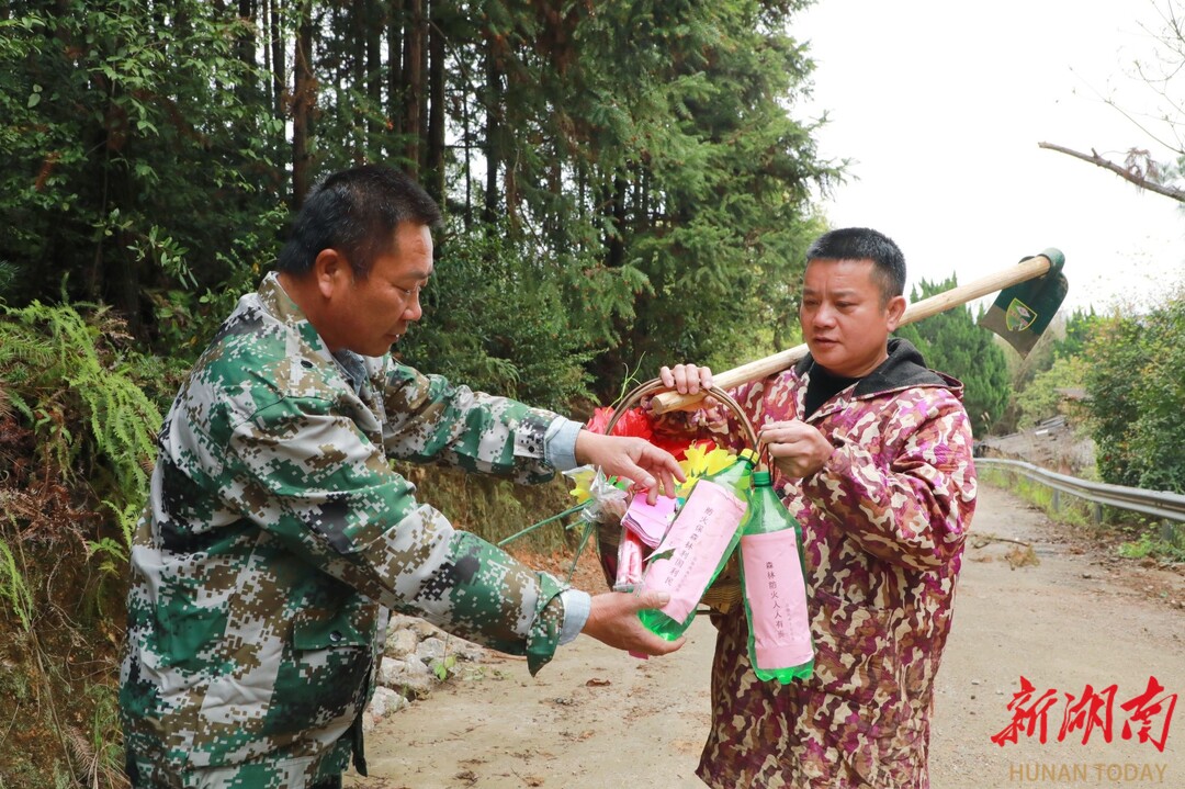 为了让防火知识入脑入心,村干部还将操作要领编成了通俗易懂的防火口诀:“瓶身开小孔,灌水盖紧盖,遇火捏瓶身,细流灭隐患。”除了物资保障,道塘村还同步加强了防火巡查和宣传引导。村干部和护林员分组包片,在重点时段、重点区域开展不间断巡查,并通过应急广播、悬挂横幅、发放宣传单等方式,倡导文明祭祀。