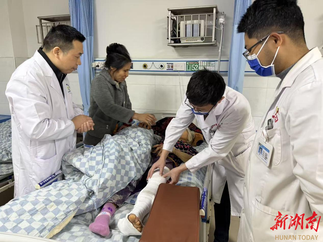 医疗团队还深入病房开展教学查房,邵阳市名中医郭艳波、申明高与护理专家一同细致查看患者病情,交流诊疗方案、分享临床经验,为疑难病例提供专业指导,随后又迅速回到义诊岗位继续服务群众。