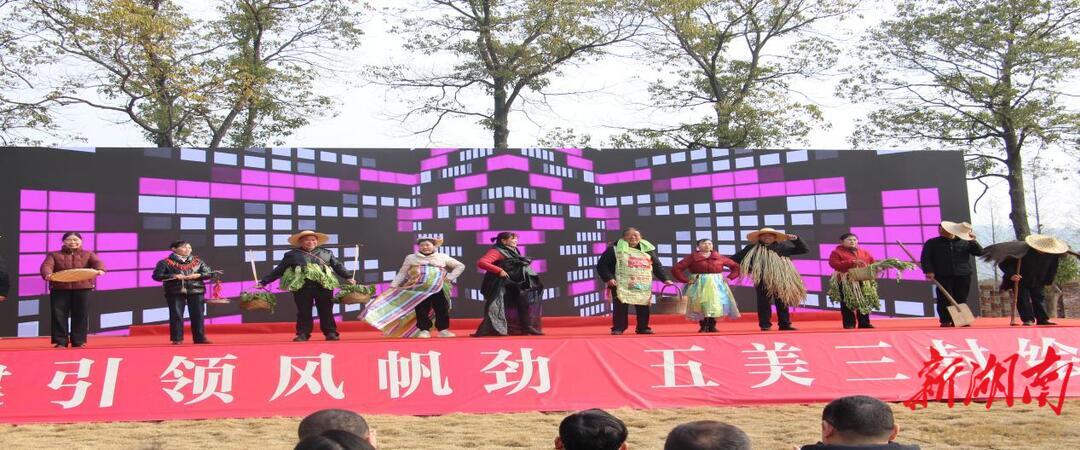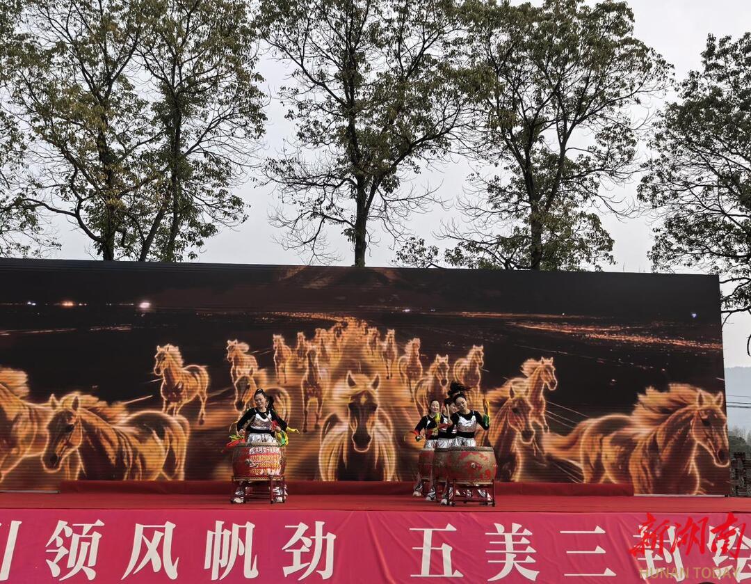 村民当主角,乡村舞台绽光芒。 文化节上,来自27个村民小组的节目均由村民自编自导自演。非遗威风鼓《中华绿旋风》气势磅礴,流行舞蹈《爱你》青春洋溢,而由退休村干部和老党员们扛起锄头、扁担上演的特色走秀,更是赢得了满堂喝彩。从“台下看客”到“台上主角”,从田间劳作的“泥腿子”到舞台聚光灯下的“民星”,村民们展现了“我的舞台我做主”的文化自觉与自信,党员带头的担当精神也深植人心。