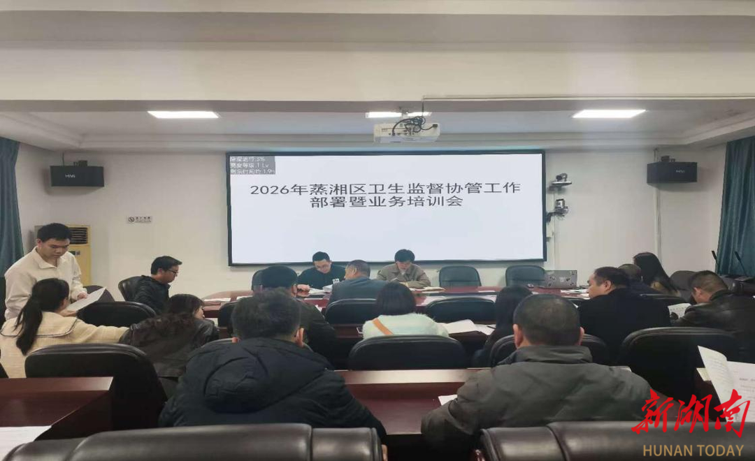 湖南日报·新湖南客户端3月27日讯(通讯员王涛 陈华平)为进一步加强基层卫生监督协管队伍建设,切实发挥好基层“前哨”作用,全面提升卫生监督协管服务效能,3月26日,衡阳市蒸湘区疾病预防控制中心(蒸湘区卫生综合监督执法局)组织召开2026年全区卫生监督协管工作部署会暨业务培训会。该区各镇卫生院、社区卫生服务中心的卫生监督协管员及分管负责人参加培训。