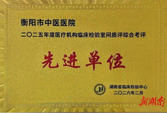 大众卫生报·新湖南客户端3月27日讯(通讯员 朱成斌)近日,湖南省临床检验中心公布2025年度医疗机构临床检验室间质评综合考评结果,衡阳市中医医院凭借过硬检验技术和全链条闭环质量管理体系,连续七年荣获“先进单位”称号,印证其临床检验质量与管理水平稳居全省前列,检验结果获省级权威机构高度认可。