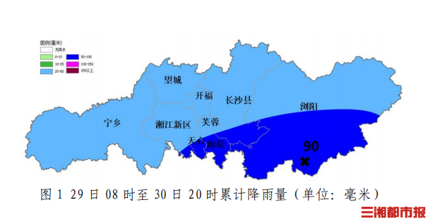三湘都市报·新湖南客户端3月27日讯(全媒体记者 李致远 通讯员 吴瑕)3月27日,记者从长沙市气象台获悉,预计29日下午至30日白天,长沙有一次大到暴雨过程,大部分地区累计雨量30~50毫米,城区南部、长沙县南部、浏阳南部60~90毫米;最强时段为29日晚上至30日上午;最大雨强30~50毫米/小时,伴有7~9级雷雨大风、冰雹等强对流天气。