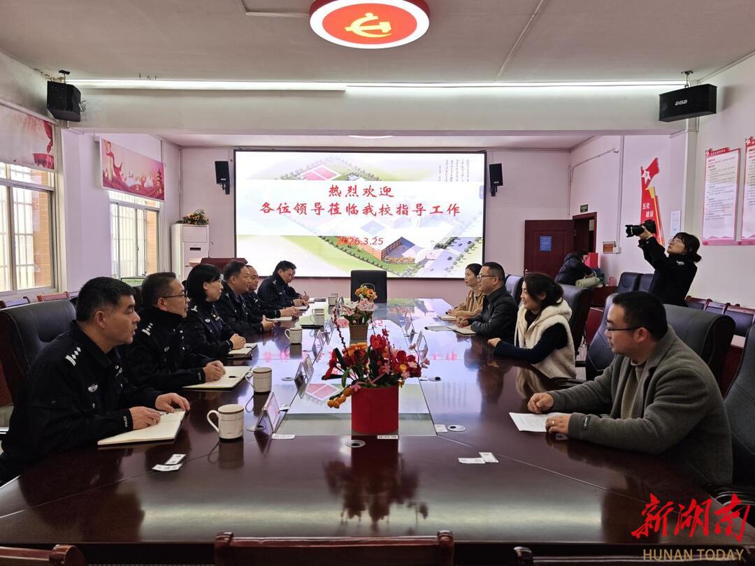 新湖南客户端3月27日讯(通讯员 钱彩凤)3月25日,宁乡市公安局党委副书记、政委龚科,局党委委员、白马桥派出所所长胡俊凯率政工室、治安大队、交管大队、警保卫大队及白马桥派出所等相关负责同志,赴宁乡市虎山特殊教育学校开展校园安全工作专题调研。调研组一行实地查看校园安全环境,并围绕学校在内保、交通、未成年人保护及周边环境管理等方面的实际需求进行深入交流,现场部署专项保障举措。