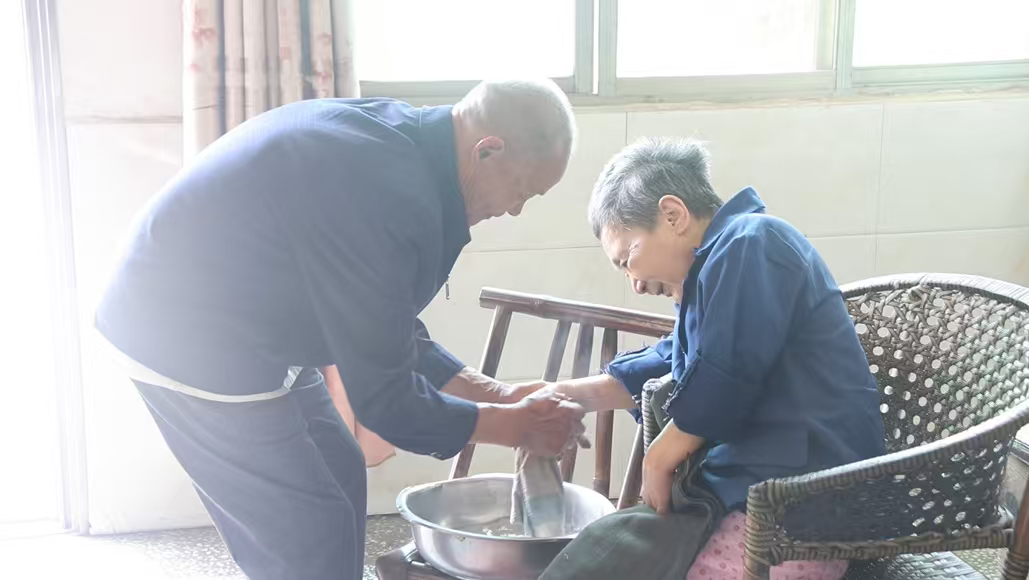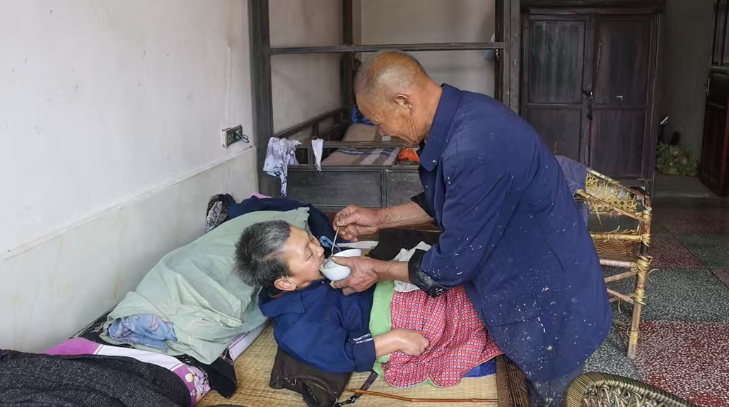 “辛苦是辛苦,看到她的身体一步步好转,我自己也感到舒服点,我会一直照顾好她。”李茂华一边说,一边小心翼翼地扶着妻子下床,这些动作四十年来每天都在重复着,但现在的李茂华显得有点力不从心。