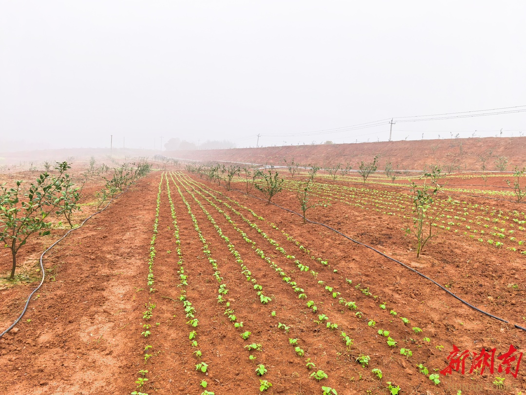 岳阳县荣家湾街道的大豆柑橘复合种植基地。