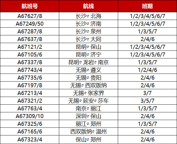 湖南航空温馨提示,换季后航班量增大,旅客出行时请注意核对航班号及起飞时间,尽量提前到达机场办理乘机手续,以免影响行程。更多航线信息可通过湖南航空官方网站、官方小程序查询或拨打客服热线400-833-7777咨询了解。
