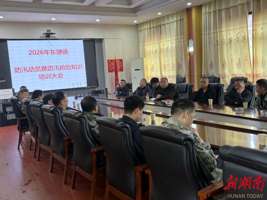 新湖南客户端3月27日讯(通讯员 王思凯)为筑牢2026年防汛安全防线,提升防汛抢险实战能力,3月27日,湘阴县东塘镇召开2026年防汛动员暨抢险知识培训大会。镇水利事务中心、赛美水库管理所工作人员及镇防汛抢险队等30余人参会,以“理论+实战”模式部署防汛备汛工作,为辖区汛期安全保驾护航。