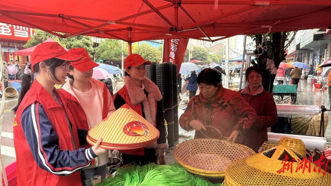 渣江“赶二八”历史悠久,主要为新的一年农业生产特别是春耕生产做准备,交易的产品以农具、农资、土特产等为主,是衡阳市级非物质文化遗产,承载着湘南地区深厚的农耕记忆与民俗风情。活动中,学生志愿者认真聆听老农人讲解“赶八”“赶社”“赶戊”的历史渊源,感受从土地祭祀到寿佛祝寿、社戏展演、农耕贸易的民俗演变;认真记录民俗活动流程、商品交易等细节。休息之余,大家还品尝了渣江米粉、假羊肉等特色美食,近距离触摸地道的乡土烟火气。志愿者们在沉浸式体验中学习传承本土民俗文化,深刻感悟家乡文化的独特魅力。