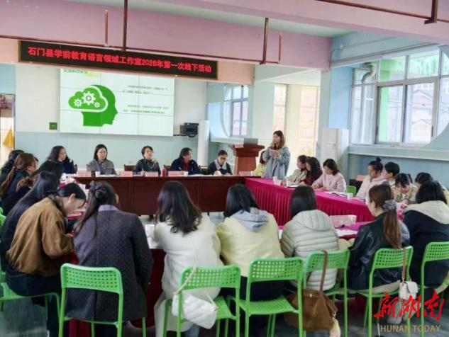 科教新报·新湖南客户端讯(通讯员 张常辉 覃业彦)3月27日,石门县学前教育语言领域工作室完成新一轮重组并正式启航,2026年度首次线下教研活动在宝峰街道宝塔幼儿园开展。全县7所公、民办幼儿园的园长及教学骨干齐聚一堂,活动以专业引领、抱团发展为核心,旨在破解语言领域教学难点,推动县域学前教育优质均衡发展。