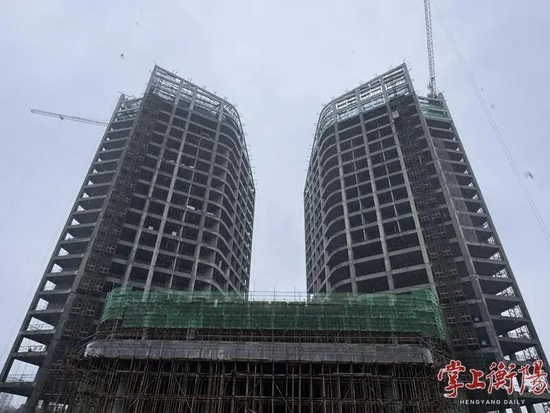 蔡伦大道虎形山公园旁,祥峰酒店项目施工现场,春雨淅沥,工人们照样干得起劲。室内精装修和幕墙施工同步推进,机器的轰鸣声和雨声混在一起,反倒增添了几分热火朝天的劲头。项目东塔、西塔已封顶,附属设施也基本完工。建成后,它将串起南岳、石鼓书院等旅游资源,成为大衡阳旅游圈的重要一环。