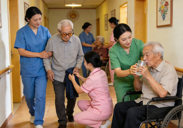 (护理人员照顾失能老人的生活。图片由AI生成。)