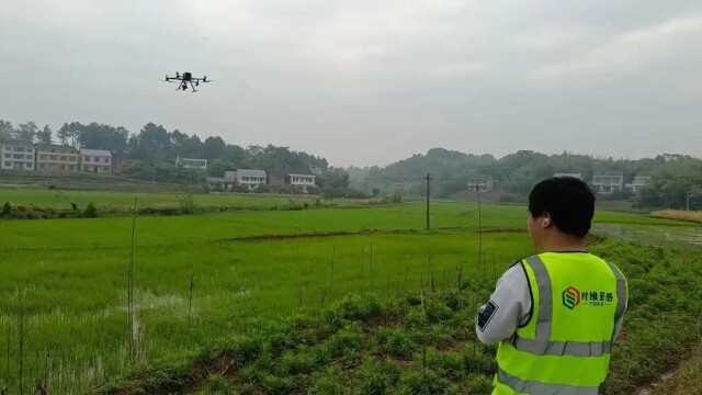 (技术团队用无人机进行外业调查。)