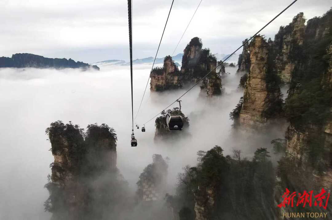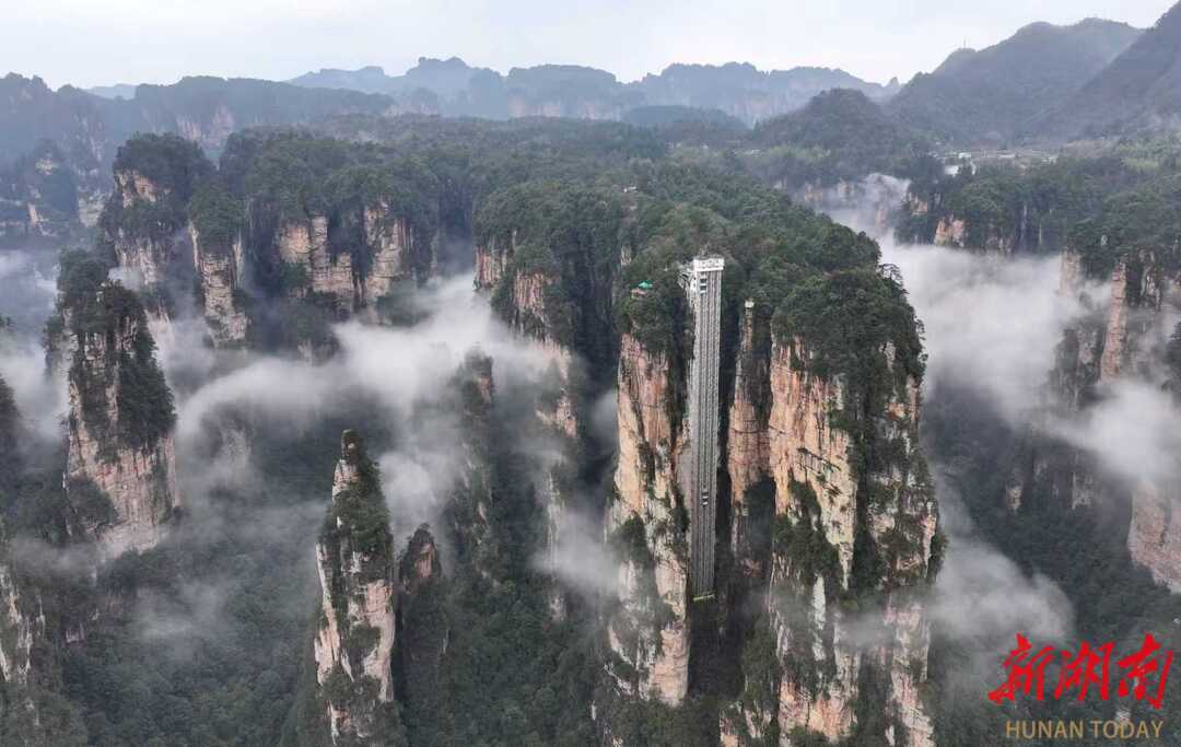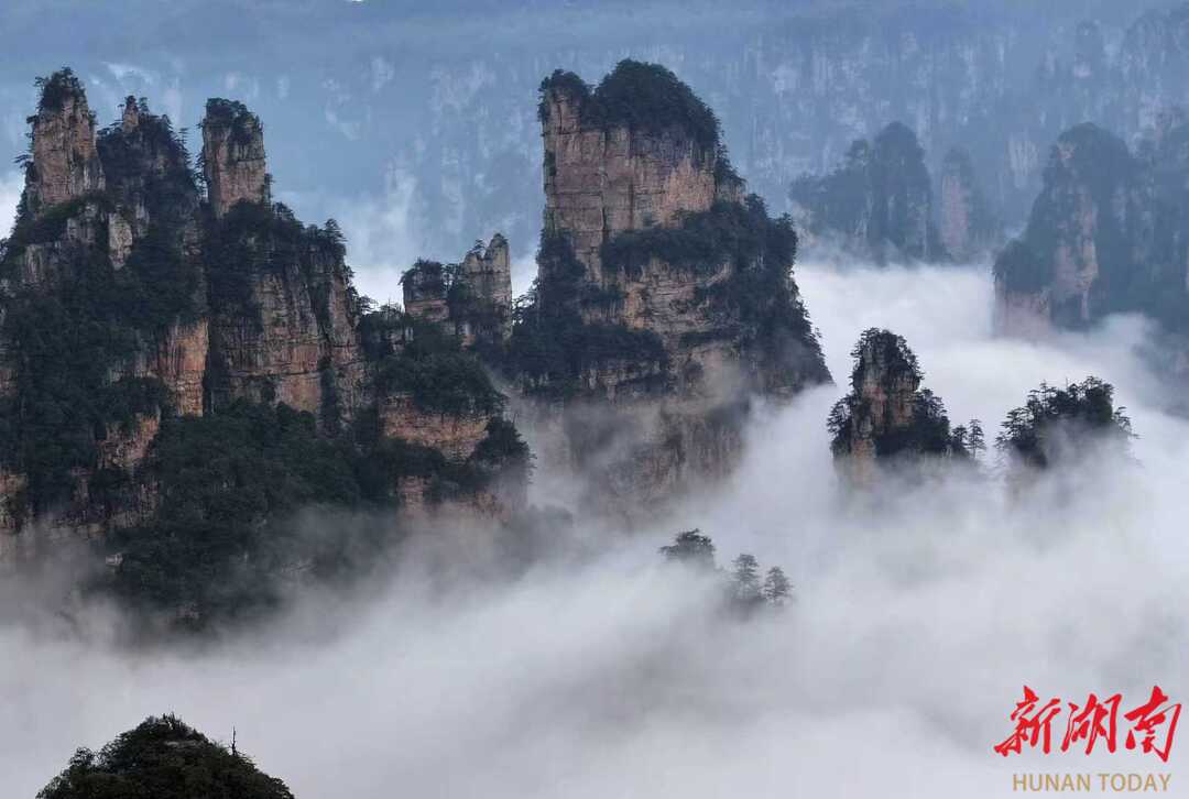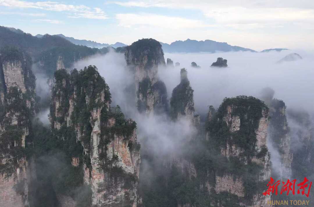 3月27日,春雨过后的湖南张家界国家森林公园出现壮美的云海景观,洁白的云雾在陡峭的峰林间变幻飘逸,宛如水墨画境。通讯员 吴勇兵 摄影报道