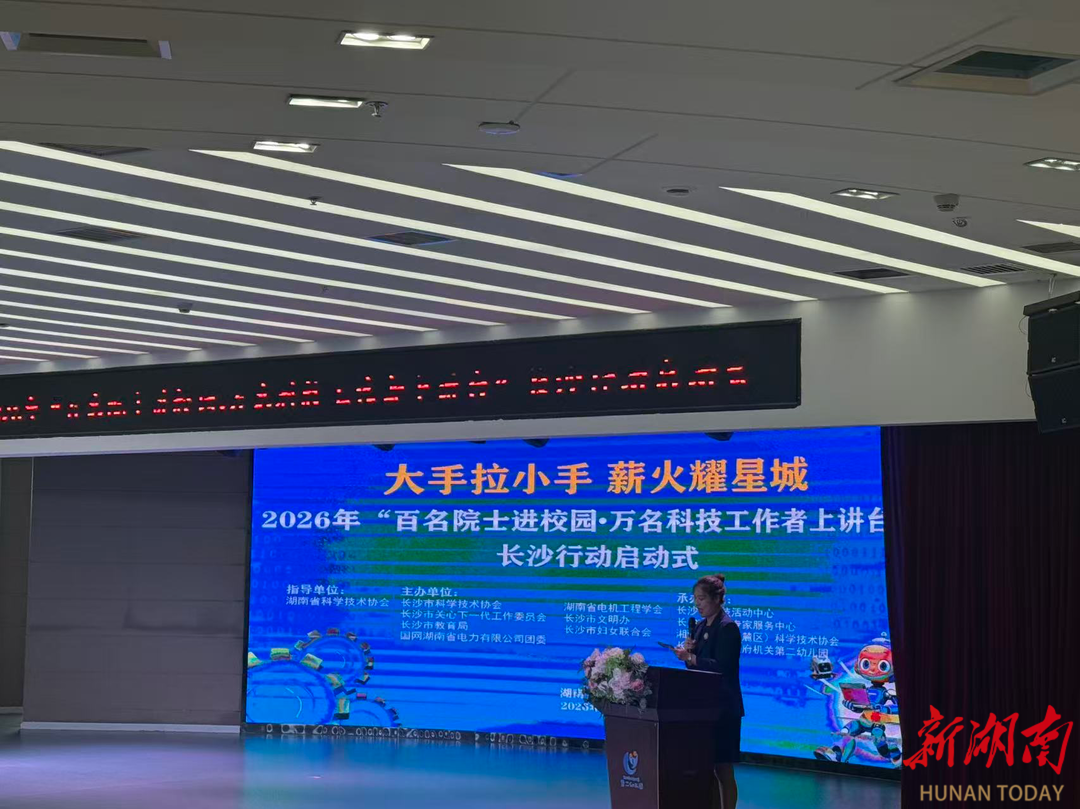 湖南日报·新湖南客户端3月27日讯(记者 唐璐)今天上午,由长沙市科学技术协会联合多家单位共同主办的2026年“百名院士进校园·万名科技工作者上讲台”长沙行动启动式在长沙市政府机关第二幼儿园举行。本次活动以“大手拉小手 薪火耀星城”为主题,通过院士引领、科技工作者参与,推动科普资源走进校园,点燃青少年科学梦想。中国工程院院士陆佳政出席活动并作科普报告。