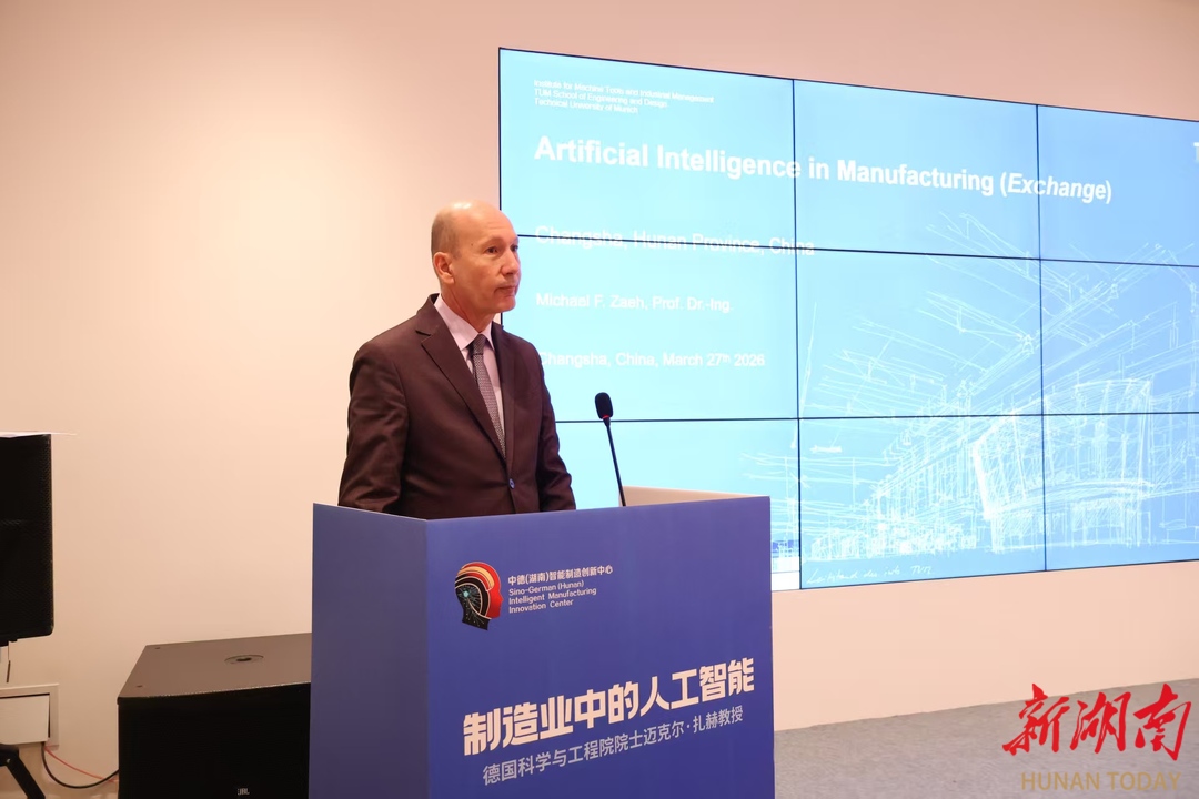 本次交流会特邀迈克尔·扎赫院士莅临主讲,作为德国科学与工程院主席团成员、慕尼黑工业大学机具与工业管理研究院院长,扎赫院士在智能制造、人工智能与工业机器人等领域拥有卓越国际影响力。他围绕“制造业中的人工智能”主题发表演讲,结合德国工业4.0发展经验,分享人工智能在制造业生产优化、可持续发展中的应用实践,并针对长沙制造业智能化转型提出专业建议。