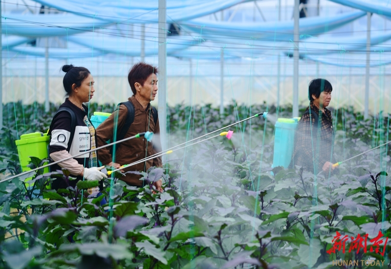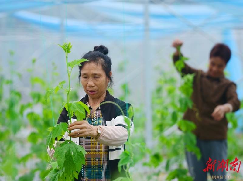 3月27日,嘉禾县珠泉镇双峰村,村民在大棚管护蔬菜。近年来,该镇通过“基地+合作社+农户”模式发展蔬菜轮作产业,显著提升经济效益,带动农户持续增收。黄春涛 摄(湖南图片库)