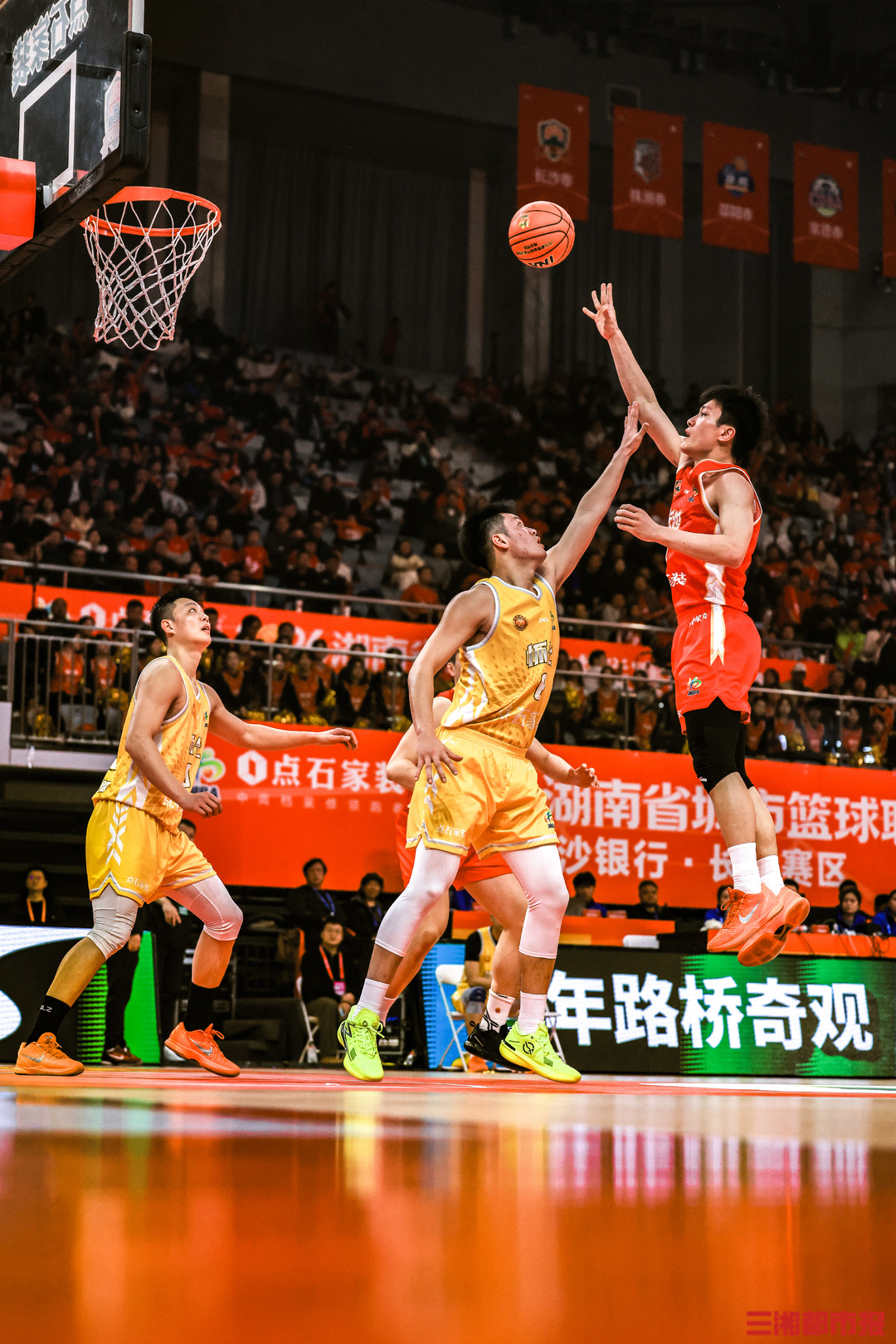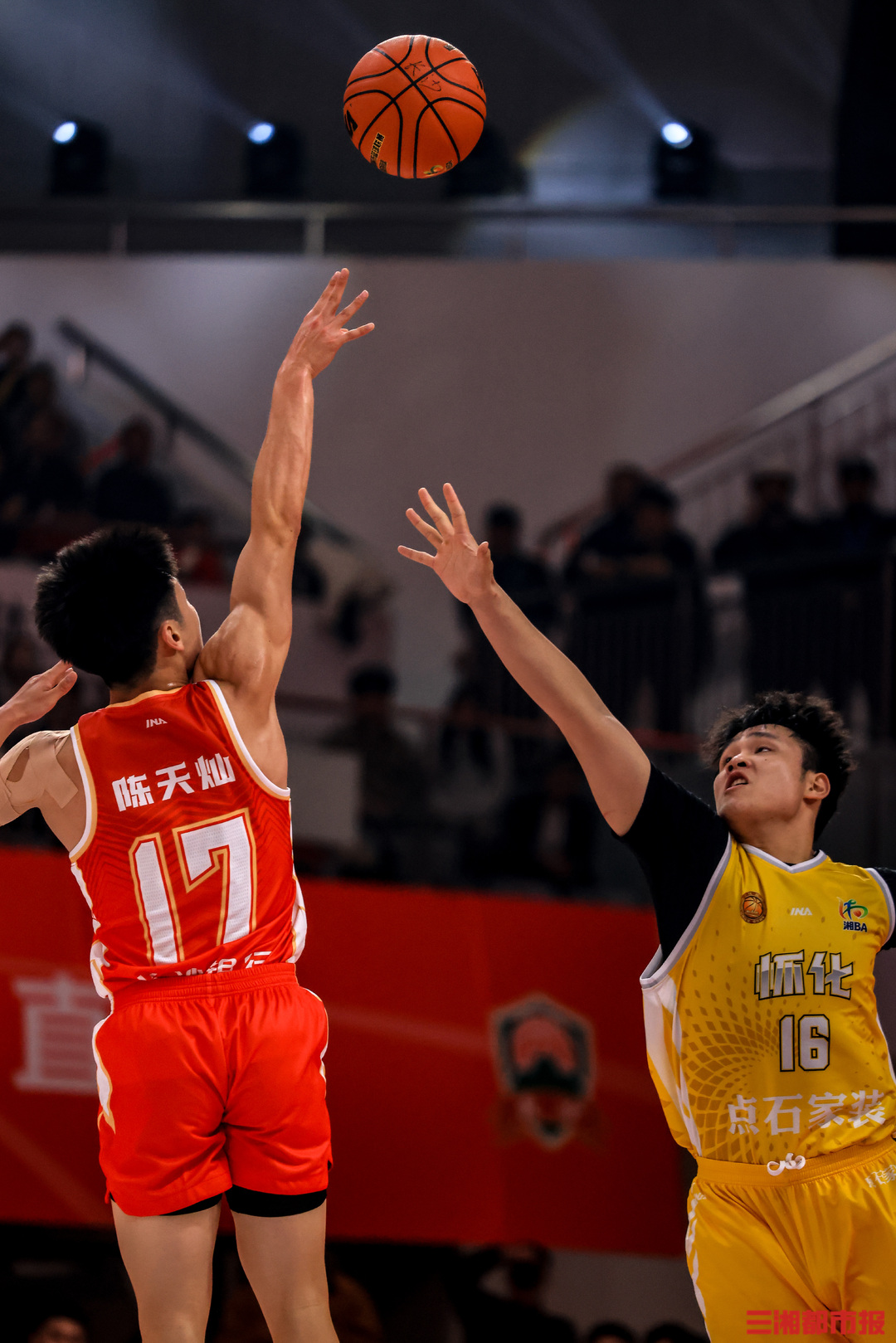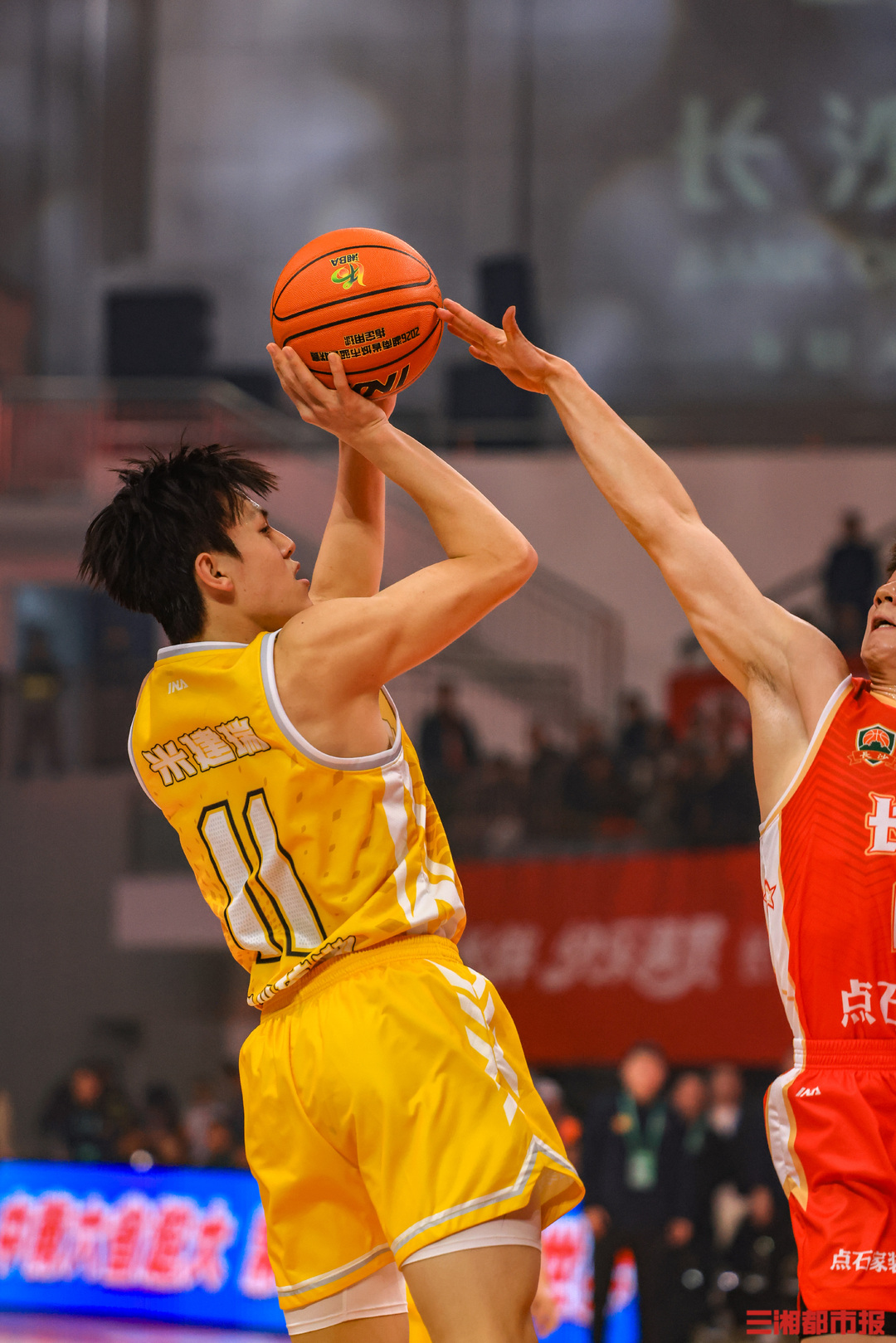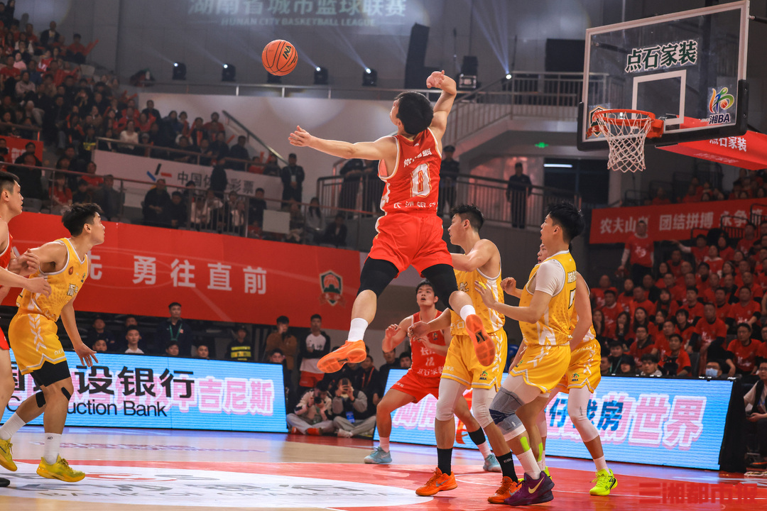 3月27日晚,2026湖南省城市篮球联赛(“湘BA”)揭幕战在湖南贺龙体育馆开打。主场作战的长沙队“兵不血刃”,在球迷呐喊声中以83比65战胜怀化队,取得开门红。全媒体记者 刘丰 叶竹 摄