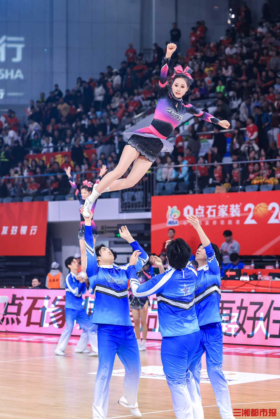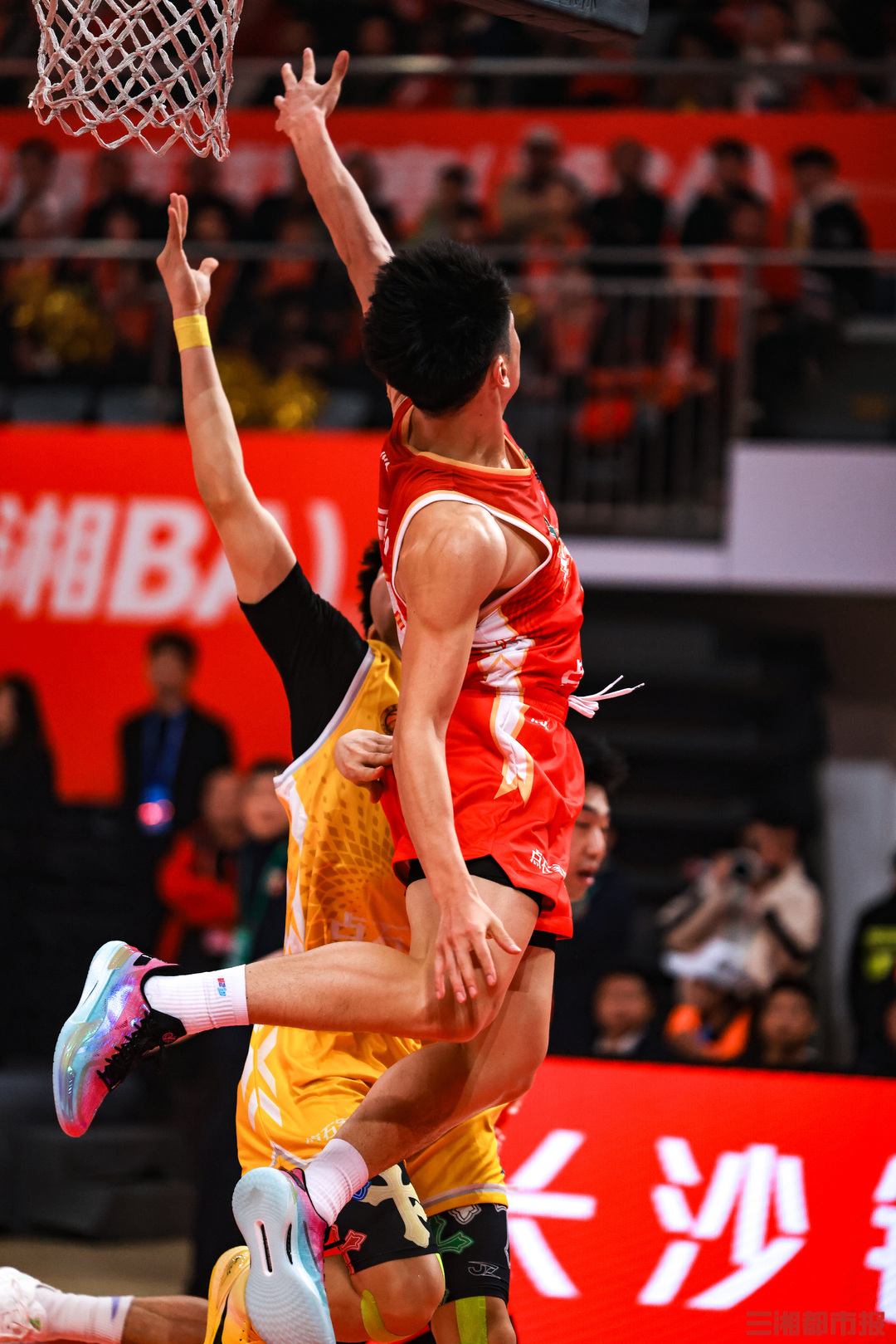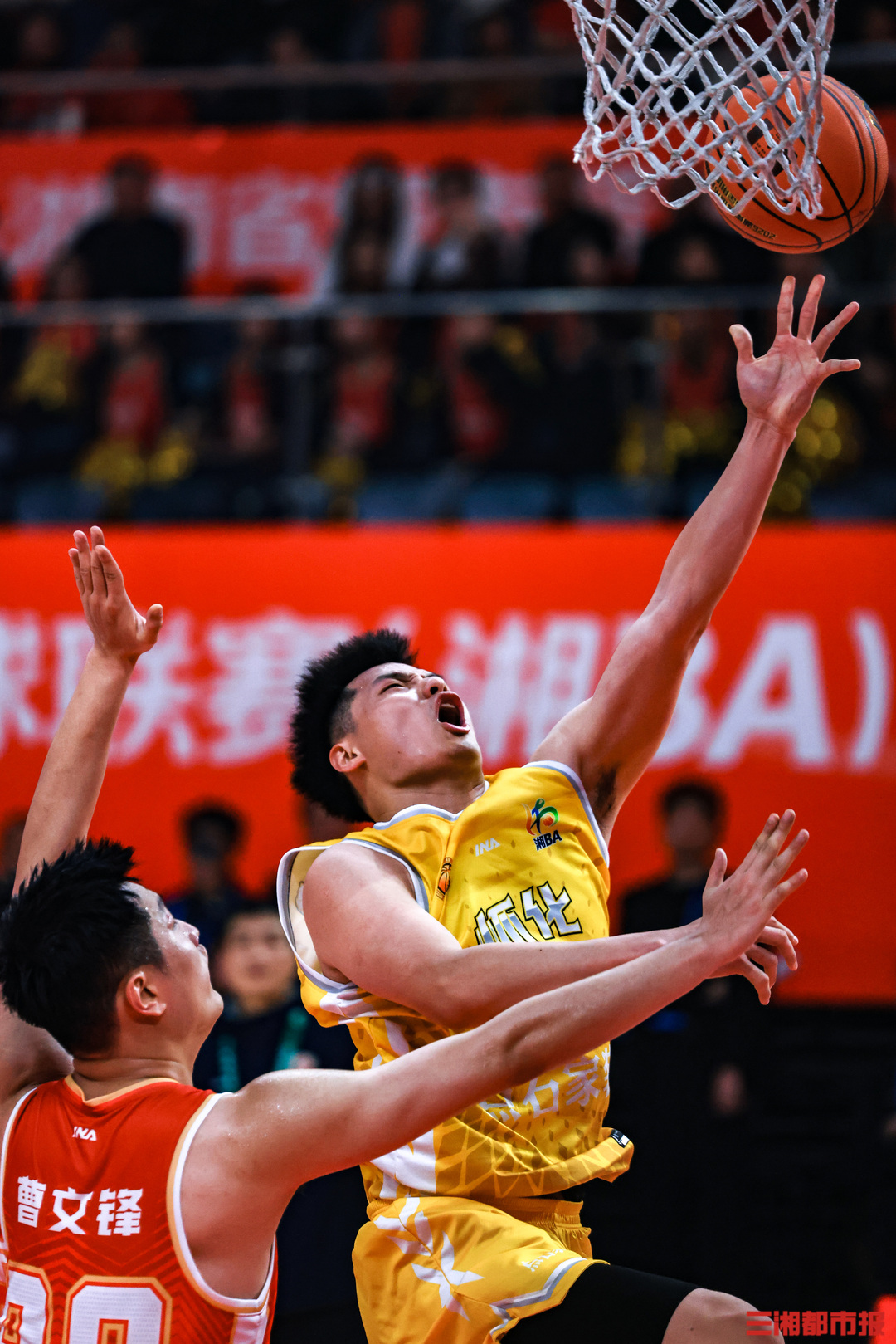 3月27日晚,2026湖南省城市篮球联赛(“湘BA”)揭幕战在湖南贺龙体育馆开打。主场作战的长沙队“兵不血刃”,在球迷呐喊声中以83比65战胜怀化队,取得开门红。全媒体记者 刘丰 叶竹 摄