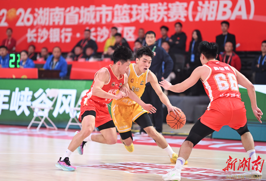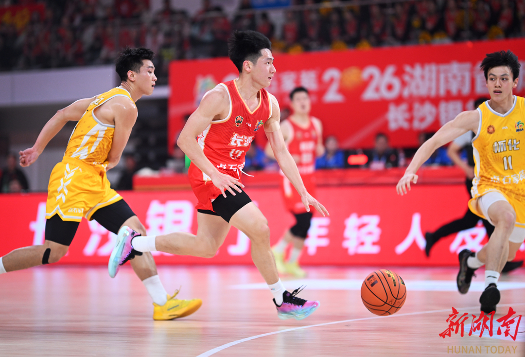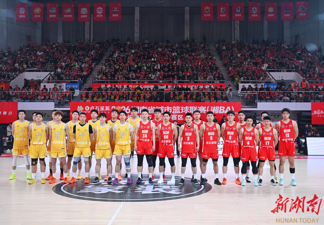 3月27日晚,2026湖南省城市篮球联赛开幕式暨揭幕战在长沙贺龙体育馆举行。经过激烈角逐,长沙队以83:65完胜怀化队,拿下揭幕战胜利。